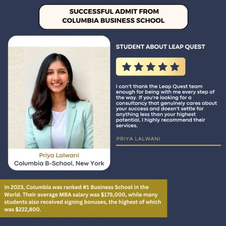 Dear Aspiring Leaders, We celebrate something truly extraordinary. Leap Quest has once again proven to be the premier specialist for Columbia Business School (CBS) admissions, helping candidates secure spots at …